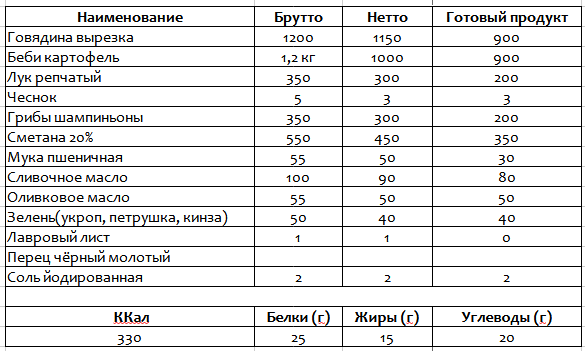 Обед: Бефстроганов с беби-картофелем. Салат "Оливье".