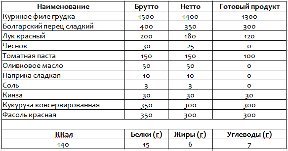 Ужин: Курица по-мексикански. Салат "Витаминный".