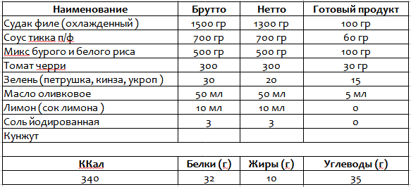 Обед: Суп с фрикадельками. Белая рыба в соусе тикка с рисом.