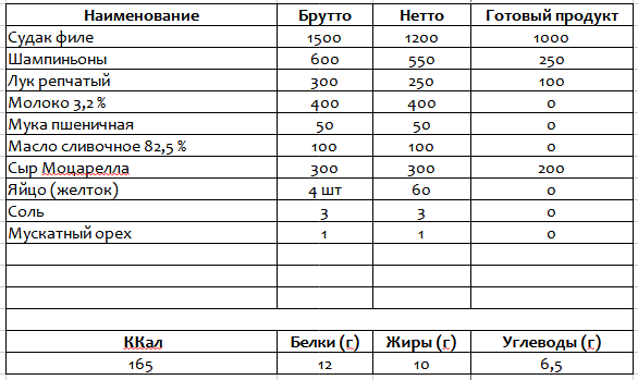 Обед: Куриный суп. Жюльен из белой рыбы с мускатным орехом.